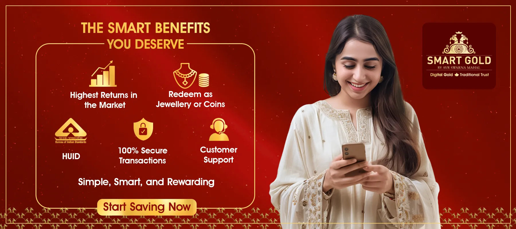 Download the Smart Gold App by AVR Swarna Mahal Jewellers today and start your journey toward owning real 22kt gold — one smart saving at a time.