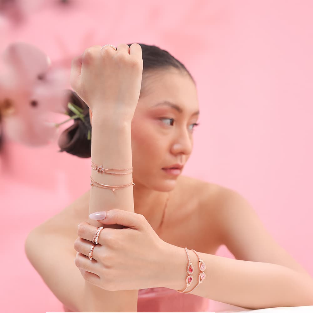 • Bracelets: Stackable silver bracelets with elegant accents, perfect for layering or wearing alone.