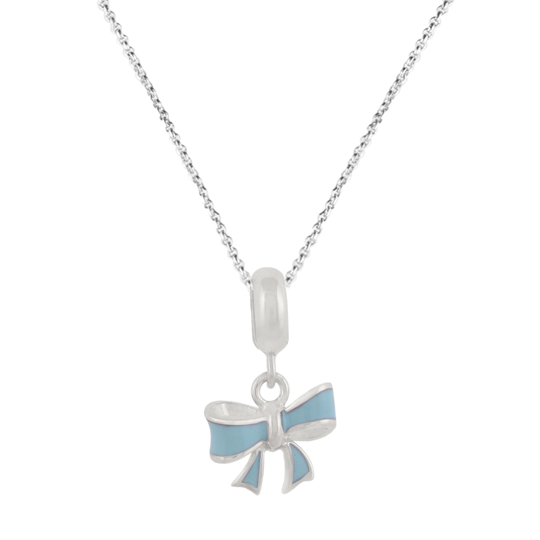 The 925 Sterling Silver Twirling Blue Bow Rhodium Plated Pendant for Kids is a sweet and whimsical accessory that adds a playful touch to any child's outfit. Crafted from high-quality sterling silver and coated with rhodium for a shiny, durable finish, this pendant features a charming twirling blue bow design. Its lightweight and comfortable construction makes it perfect for everyday wear, while the soft blue color adds a pop of fun. Whether paired with casual tees or dresses, this pendant brings a delightful, girly flair to any look!